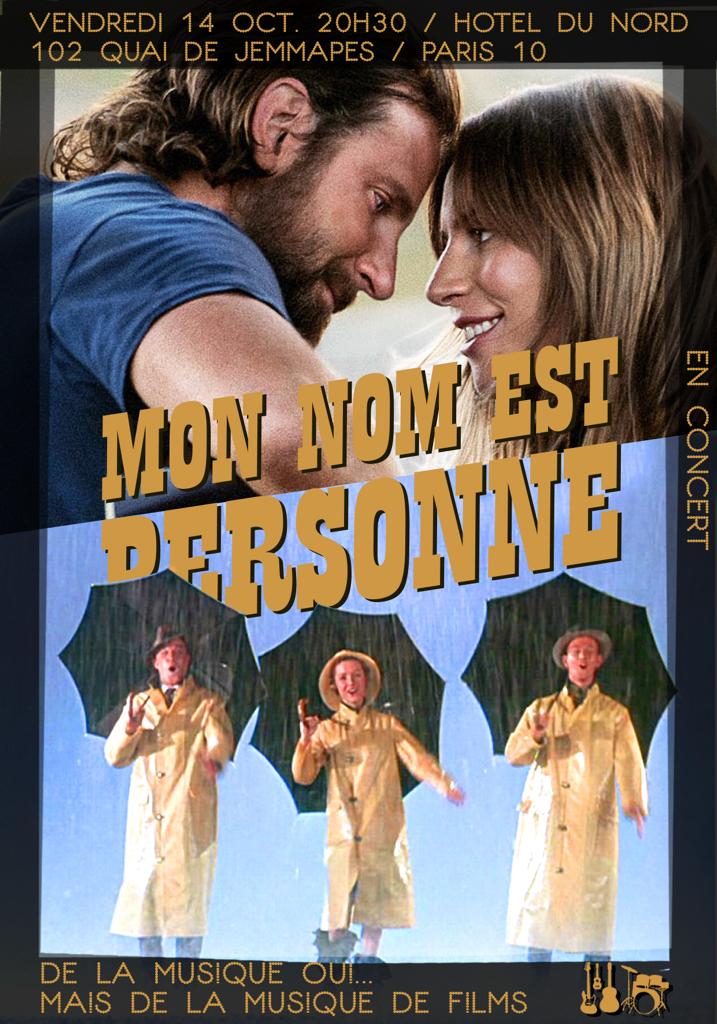 MON NOM EST PERSONNE chante dans Le bar du téléphone ou au Mariage de mon meilleur ami. De La Cité de la peur à La forêt d’émeraude, on se déplace Rien que pour vos yeux.